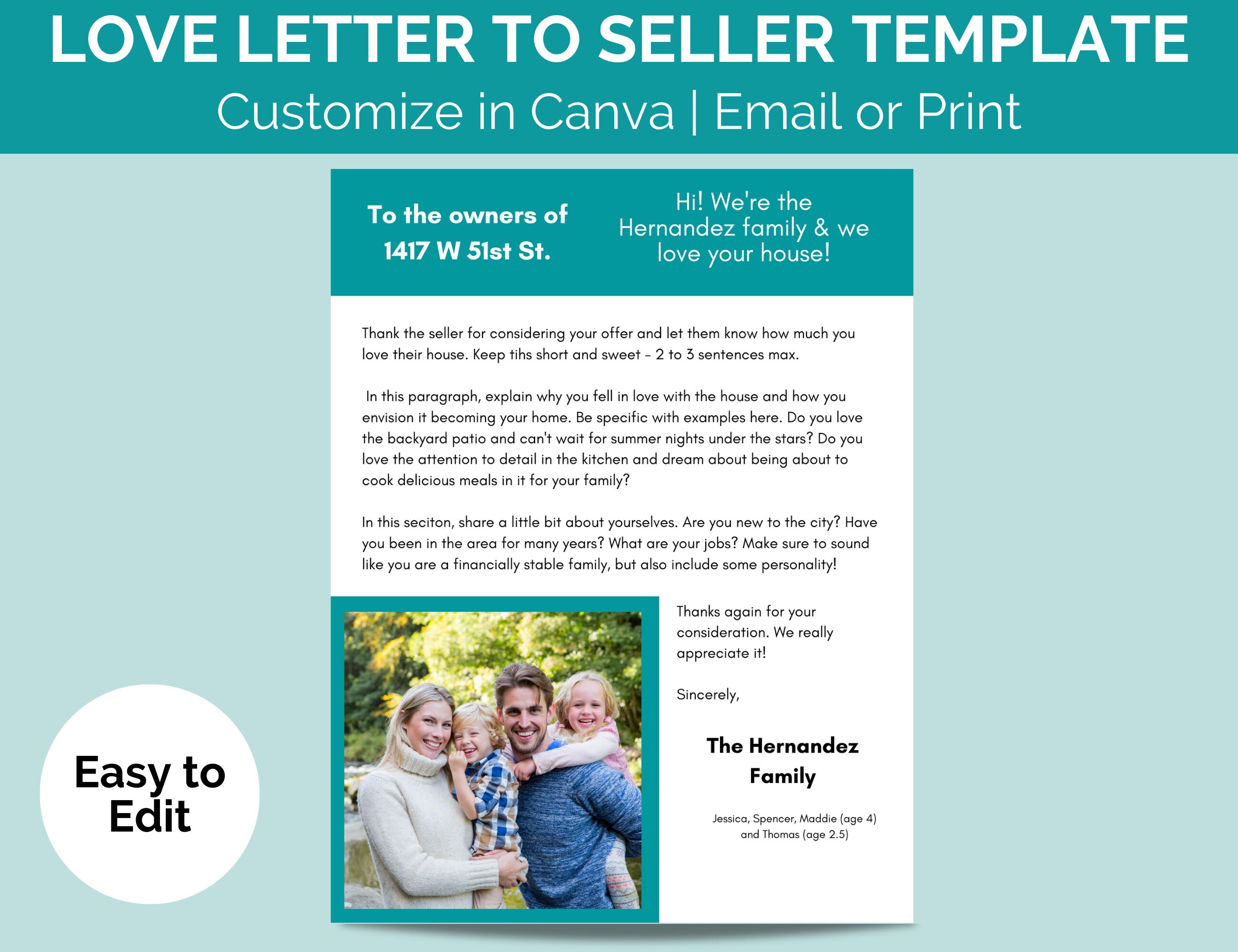 Dear Home Seller Letter Template Buyer To Seller Home Offer Letter Template Etsy Buying Offer Letter To Seller Real Estate Offer Letter Etsy